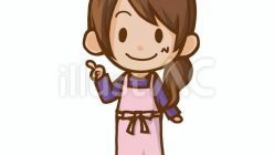 ニッコリと微笑んで立っている、青いエプロン姿の女性のイラストです。介護士、保育士、家事代行、店舗スタッフなど、暮らしをサポートするお仕事全般のイメージにぴったり。親しみやすいちびキャラが、ブログやサービスの案内ページに安心感を与えてくれます...