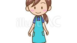 イラストAC 【無料素材】介護士・保育士などの案内に!青エプロン姿の女性イラスト(基本ポーズ)